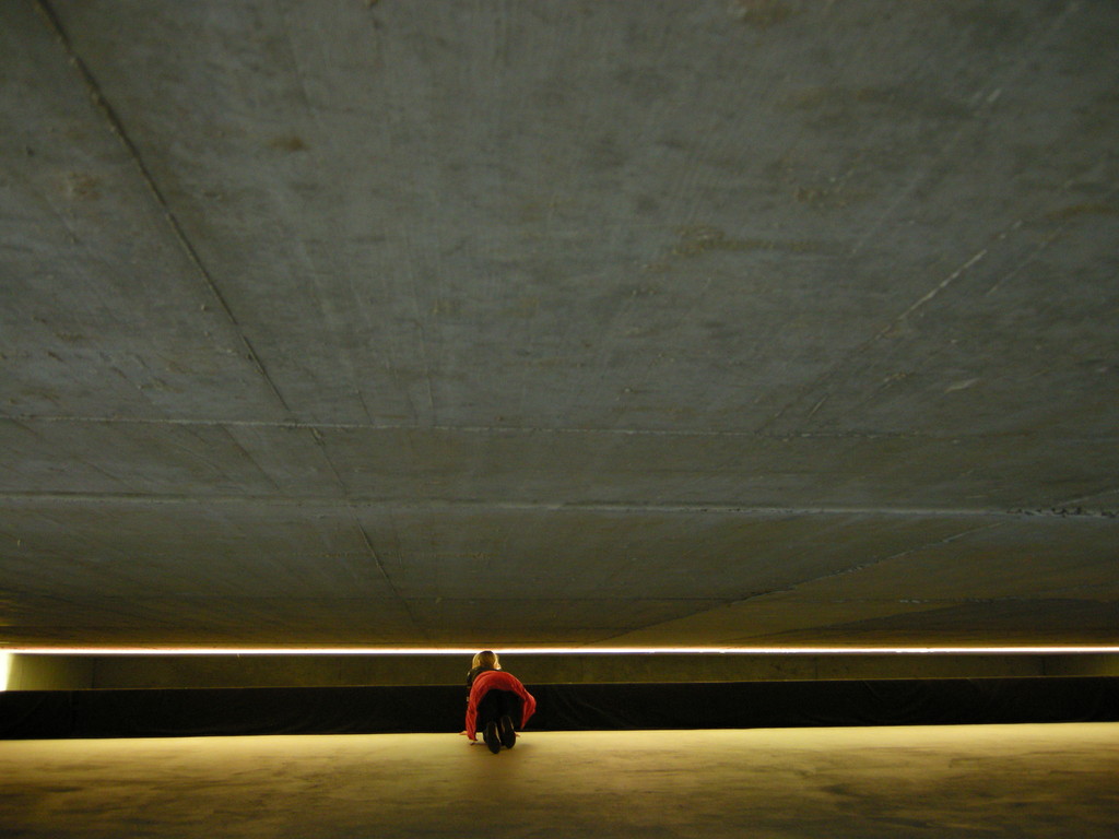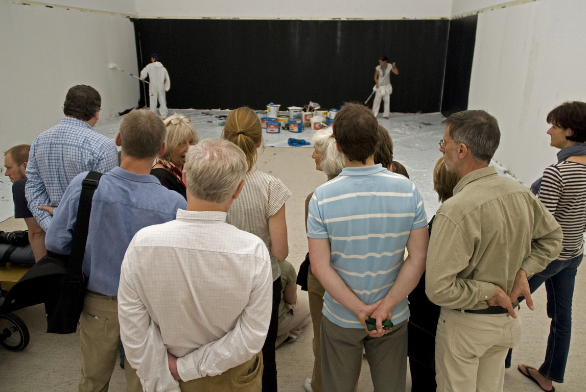 Ausstellungsräume sind vollkommen abgedunkelt, ihre Architektur verflüchtigt sich zu einem schwarzen unfassbaren Nichts. Derart empfindsam gemacht, betritt der Besucher eine neuartige, von Gregor