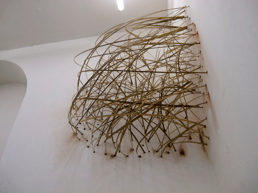 Künstlerin bezieht damit aktiv die Besonderheiten des extrem hohen und durch eine Galerie gekennzeichneten Saals ein und rückt den Besucher in eine völlig neue und un gewohnte