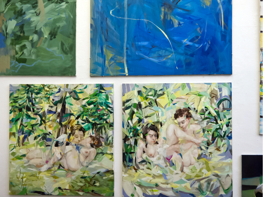 Die großformatigen Gemälde von Sibylle Springer (*1975) verweisen auf Zwischenräume und Parallelwelten, in denen sie flüchtige Momente in komplexen Überlagerungen auf der
