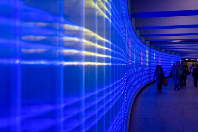 Die Lichtwand im U-Bahnhof Essen-Hauptbahnhof:
